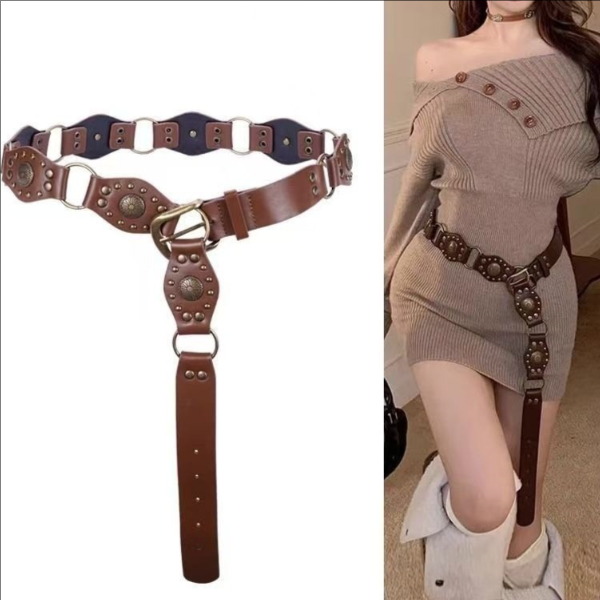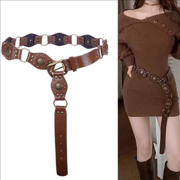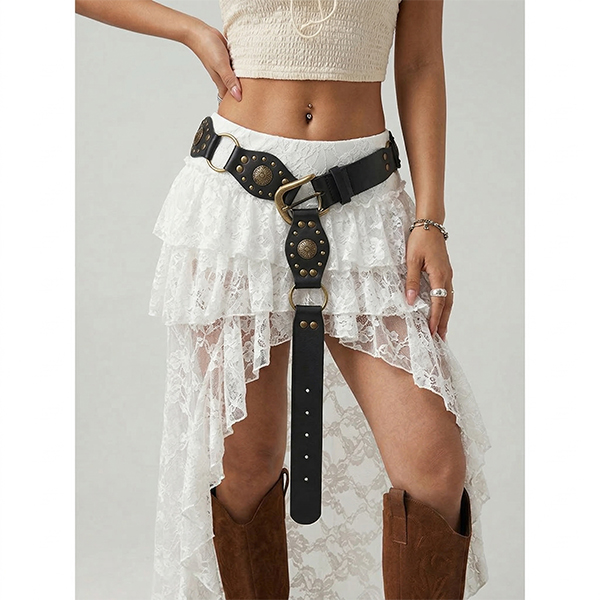 Bohemia Style Rivet O-ring Artificial Leather PU Belt