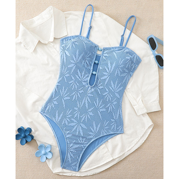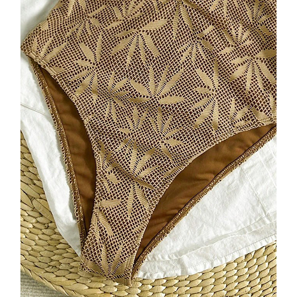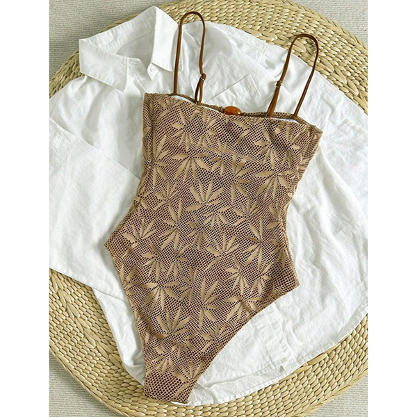 Bohemian Textured Leaf One-Piece Swimsuit with Resin Stone Cutout