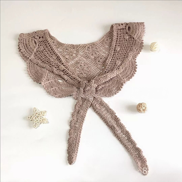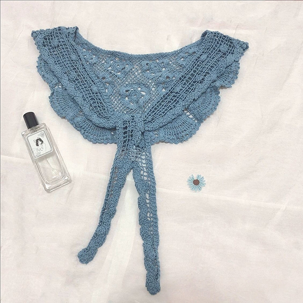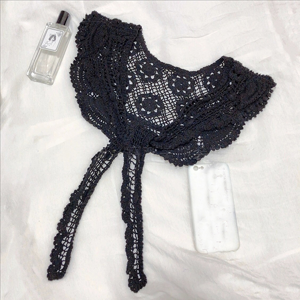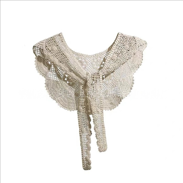 Boho Crochet Floral False Collar-Women's Detachable Lace Capelet - Tie-Front Crochet Shoulder Scarf