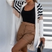 Casual Contrast Color Stripe Printed Cardigan