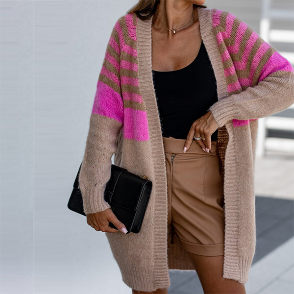 Looking for a cozy cardigan to throw on for a casual day out? This one is perfect! With a contrast color stripe print, it's eye-catching and unique. The soft material will keep you comfortable all day long. Pair it with your favorite jeans and a cute top for a complete look.