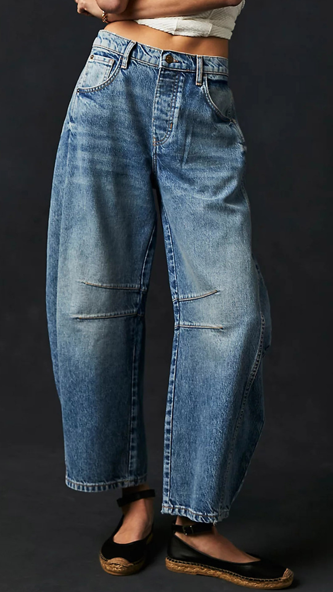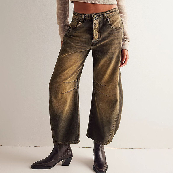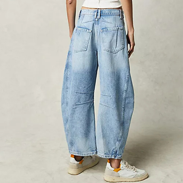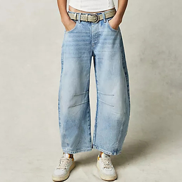 These pants feature a mid-rise waist and a sculptural leg. Vintage vibes. 100% style. Combined with an old-washed denim finish, offering a versatile and effortlessly cool addition to your casual wardrobe.