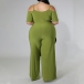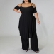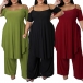 Looking for a casual and comfortable two-piece set? Look no further than this plus-size solid color set! The open-shoulder shirt is perfect for a hot summer day, while the wide-leg pants are both comfortable and stylish. Made from a lightweight and breathable fabric, this set is perfect for any activity, whether you're running errands or just relaxing at home.