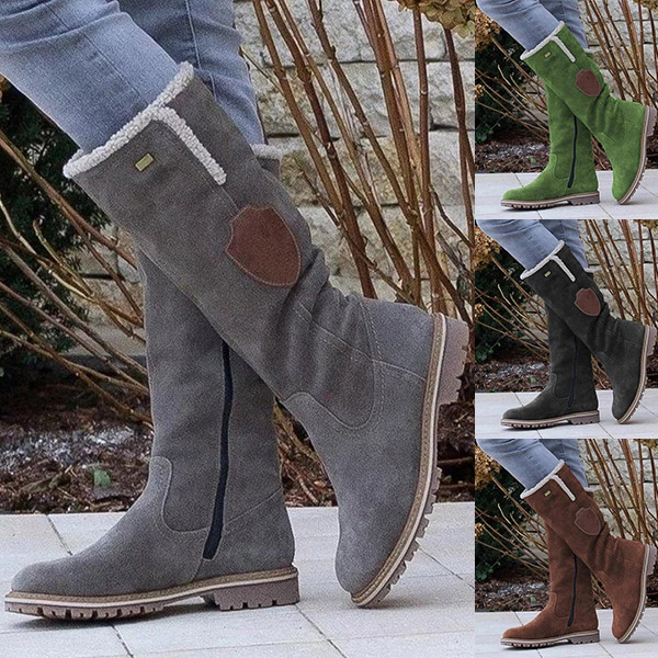 Casual Round Neck Solid Color Side-zipper Plush Lined Snow Boots