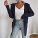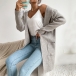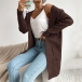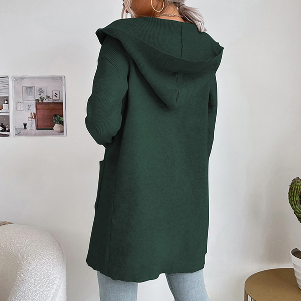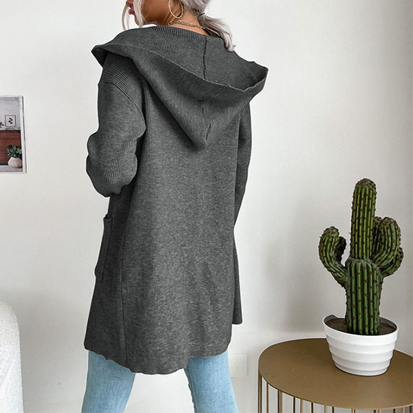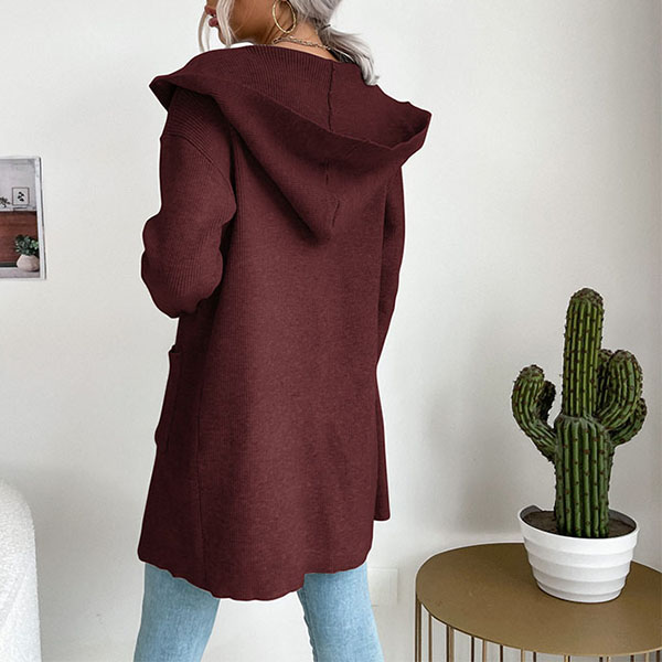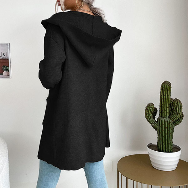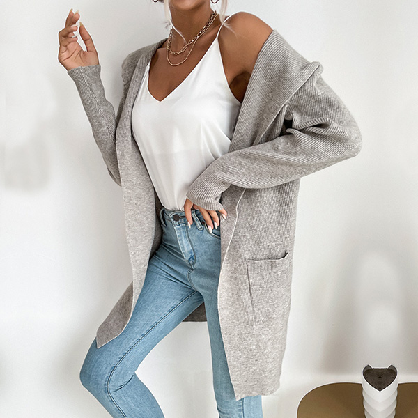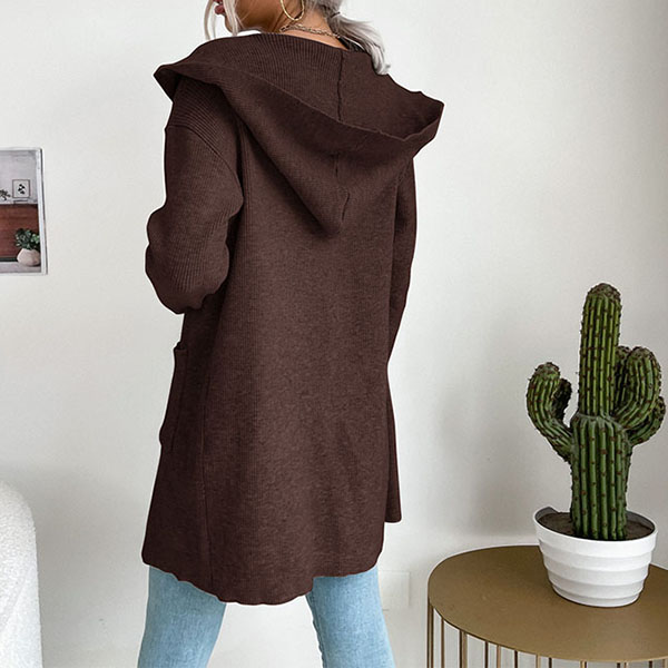 Casual Solid Color Long Sleeve Patch Pockets Knitted Hooded Cardigan