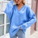 This relaxed sweatshirt combines casual comfort with distinctive design elements. The V-neck creates flattering neckline definition whilst batwing sleeves add dramatic silhouette with effortless draping. The hooded design brings sporty appeal with cozy coverage whilst the batwing sleeves create relaxed movement and comfortable fit. Perfect for weekend lounging, casual outings, or comfortable layering during transitional weather.