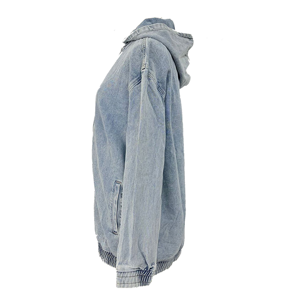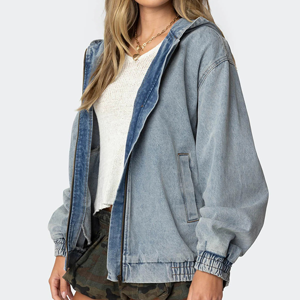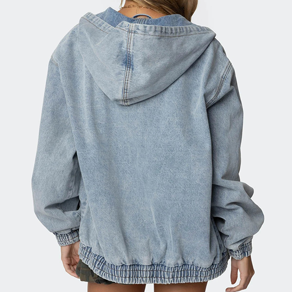 Casulal Long Sleeve Front Zipper Hooded Old-wahsed Denim Jacket