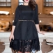 Elegant Solid Color Half Sleeve Round Neck Lace Spliced Hem Dress