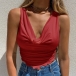 Solid color style,crafted from soft,skin-friendly and breathable fabric,this t-shirt can give you an all-day comfort. And its cowl neck with beaded design makes it look more chic and attractive. You can pair it with your any bottoms thanks to its all-match style.