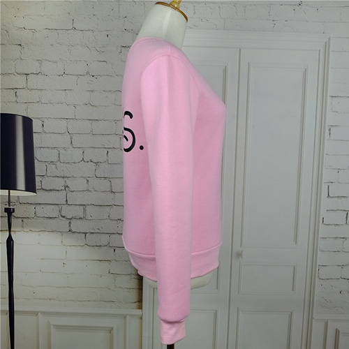 a high second glance. Solid color style,with letters printed design,outfitted with long sleeve and round