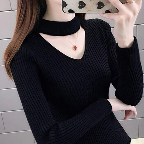 Enhance your fashion style and feminine appeal with the help of this knit top. Boasts a solid color,its soft and cozy knitted fabric can keep you warm and comfy all day,while the choker v-neck design lends you some sexy flavor.When the days get a little cold,this knit top can be your good choice.