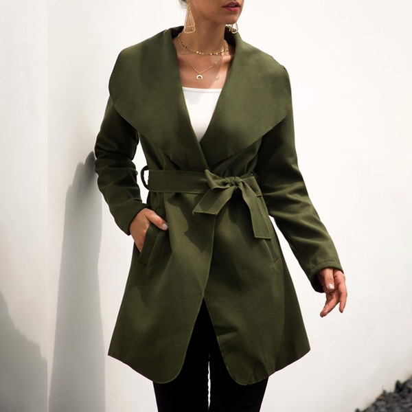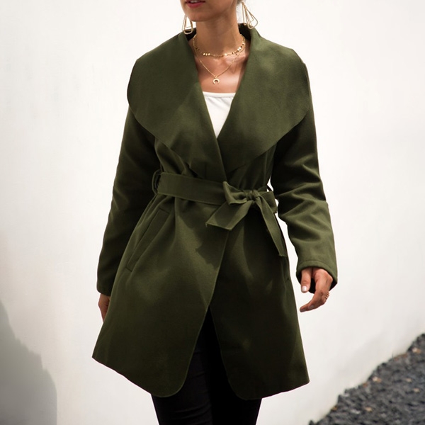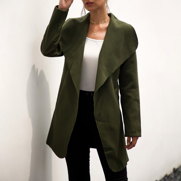 Solid color tone design makes it look simple,generous,while the big lapel design will