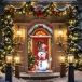 Christmas Door Banner Decorations, Santa Claus Snowman Door Cover for Front Door, Indoor Outdoor Holiday Party Porch Wall Decor, Reusable Polyester Fabric Xmas Photo Booth Backdrop