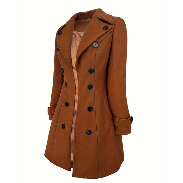 Classic Notch Lapel Long Sleeve Double-Breasted Faux Wool Jacket