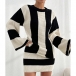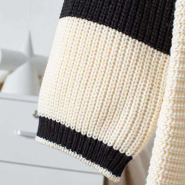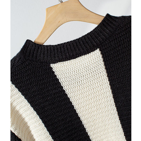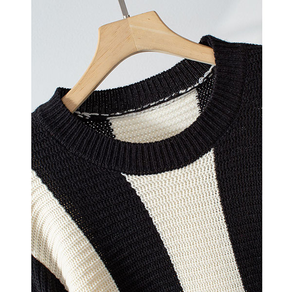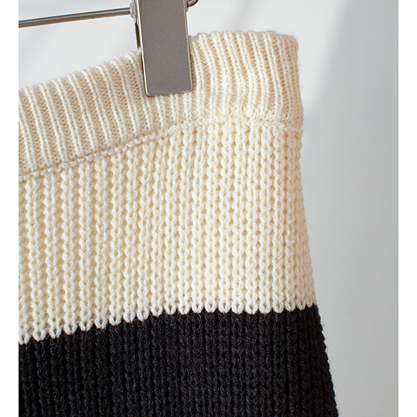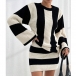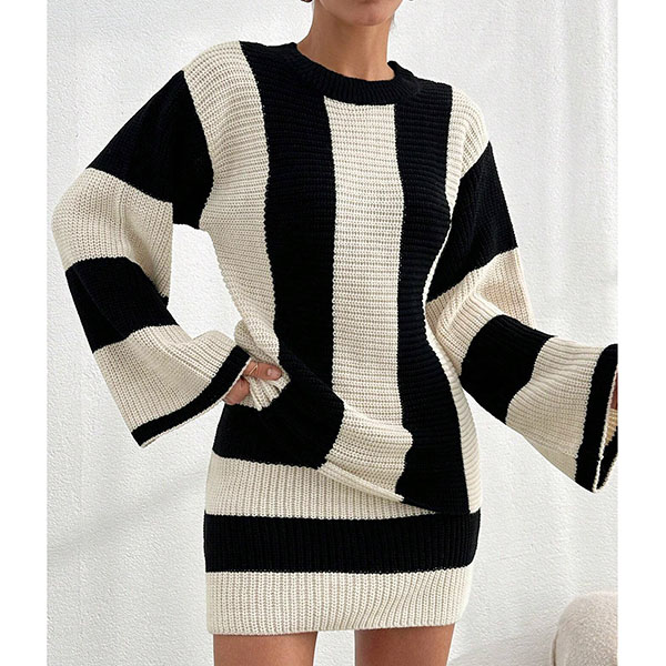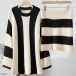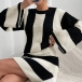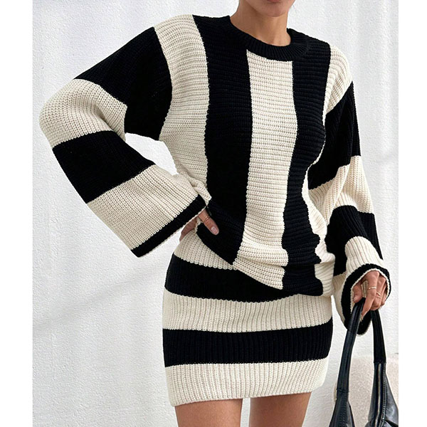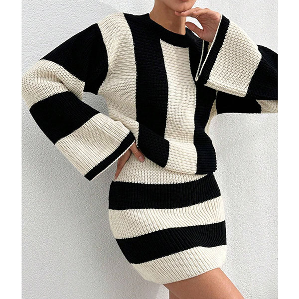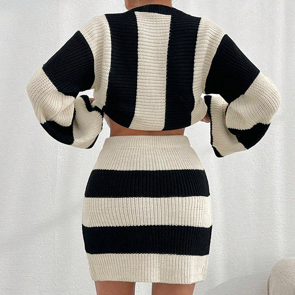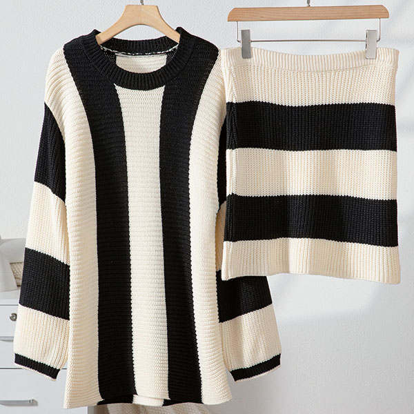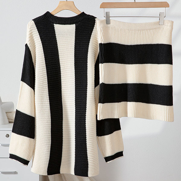 Contrast Color Two-Piece Knit Set with Striped Sweater and Matching Skirt