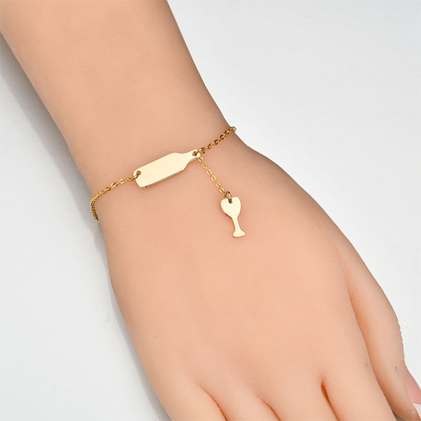 This bracelet that is full of chic and creative vibes is worth to arouse your attention. What makes it look so attractive? It owes to the wine bottle and wine glass pendant. When you wear it,your entire charm can have a boost!