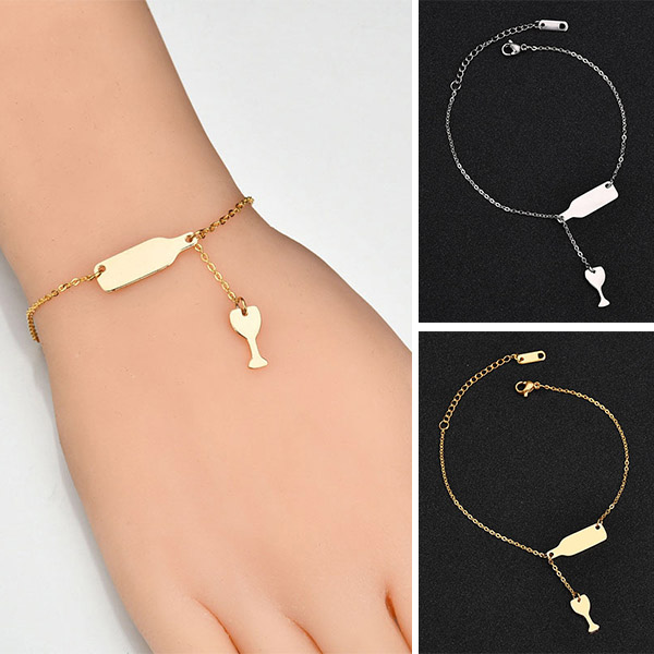 Creative Style Wine Bottle Wine Glass Pendant Bracelet