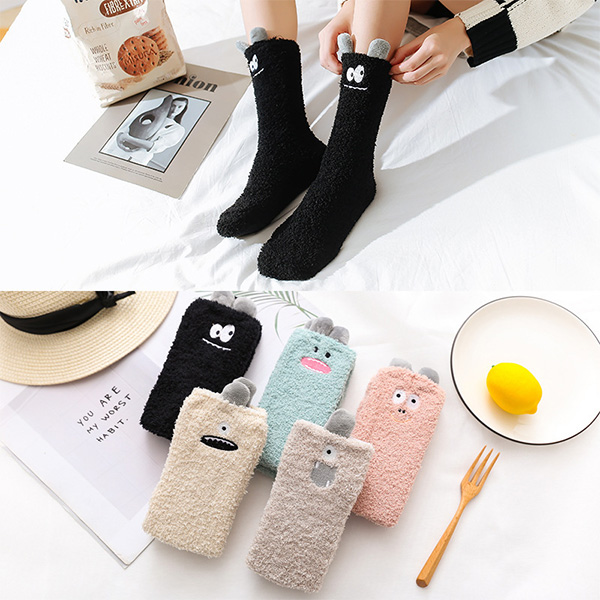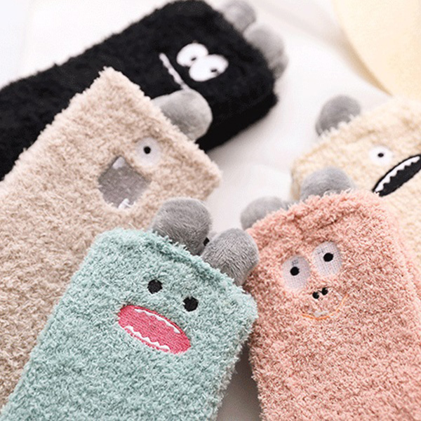 As the saying goes: "cold starts from the feet". So keeping your feet warm is an very important thing,that's why we suggest you these plush floor socks. The Little Monster embroidery design makes it look so cute and stylish,while the plush fabric design will keep your feet warm and comfy. In these cold days,these socks are your good choice.
