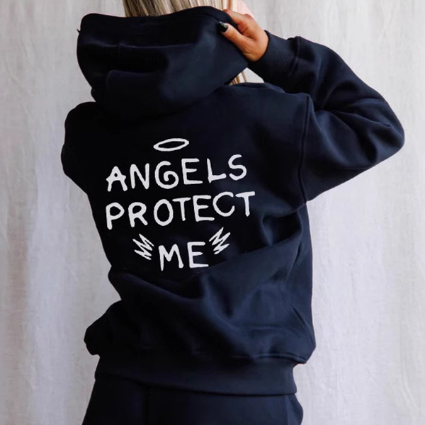 Cute Letter Printed-Angle Protect Me--Printed Unisex Hooded Sweatshirt