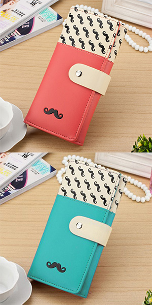 Contrast color style,with moustache pattern,chic and cute. Features money slots,coin slots