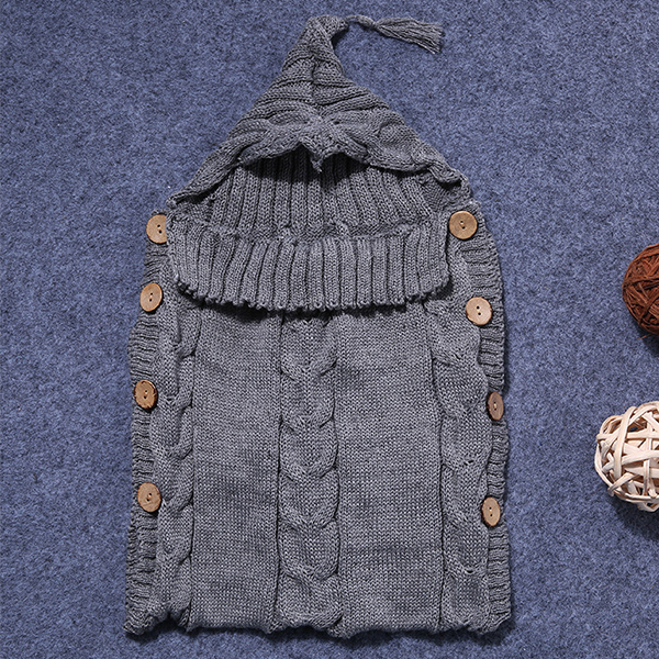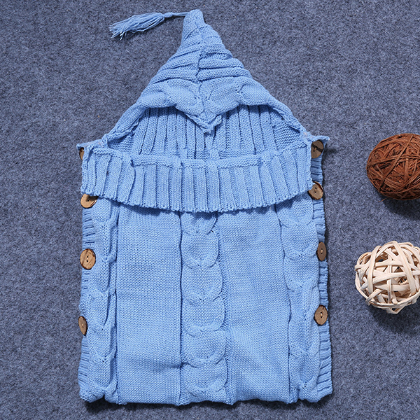 Cute Style Solid Color Hooded Knit Sleeping Bag for Babies