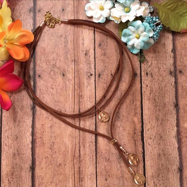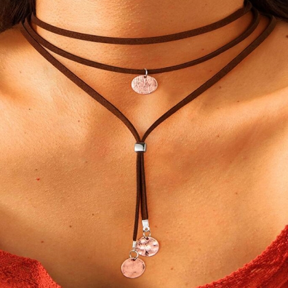 Edgy Boho Wrap Necklace -Black/Brown Faux Suede Layered Choker with Hammered Silver Coins