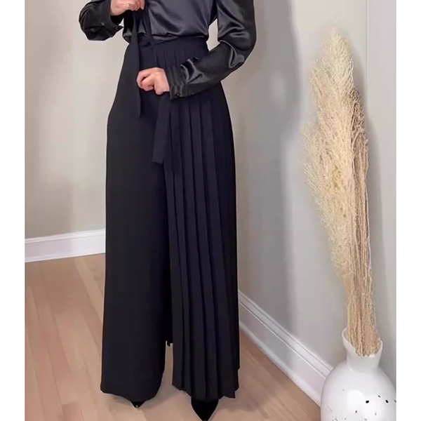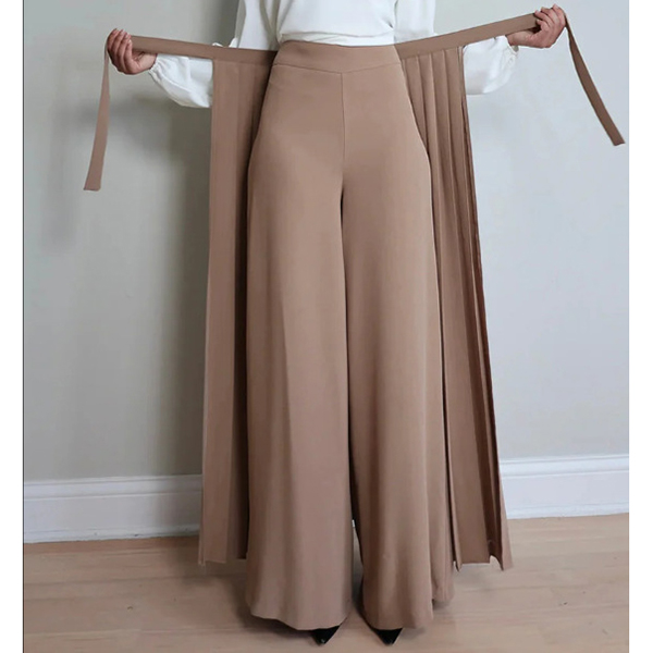 Elegant 2-in-1 Modest Palazzo Pants with Wrap-Around Pleated Apron