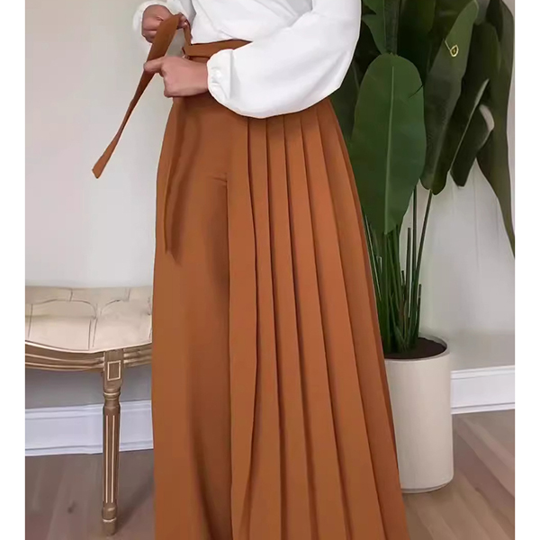 This elegant 2-in-1 modest palazzo pants with wrap-around pleated apron delivers contemporary sophistication with modest appeal. Perfect for both casual and semi-formal wear.