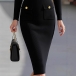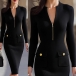 Elegant Half-zipper V-neck Long Sleeve Patch Pockets Ribbed Bodycon Dress