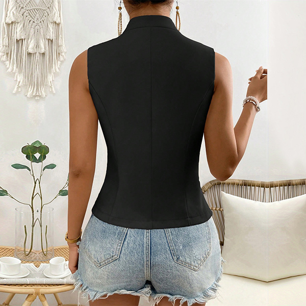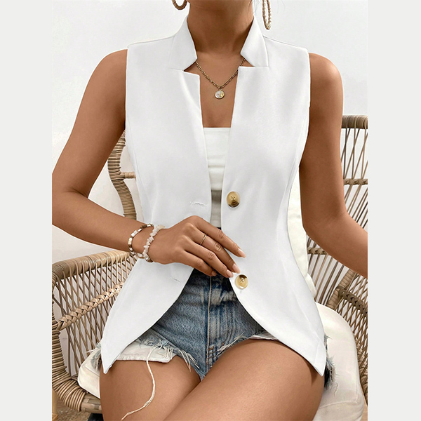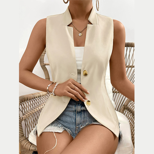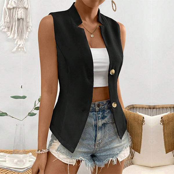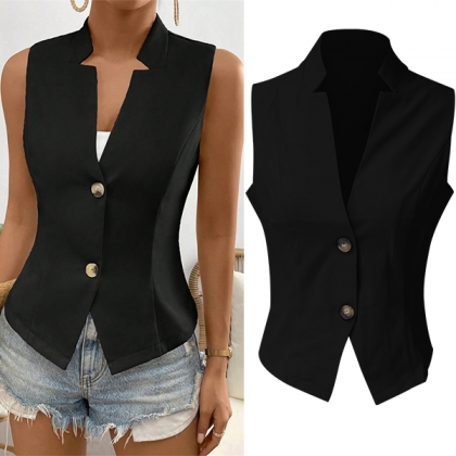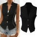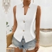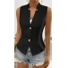 Elegant Solid Color V-neck Button Sleeveless Vest