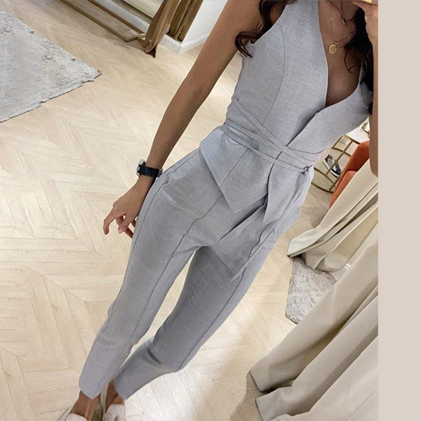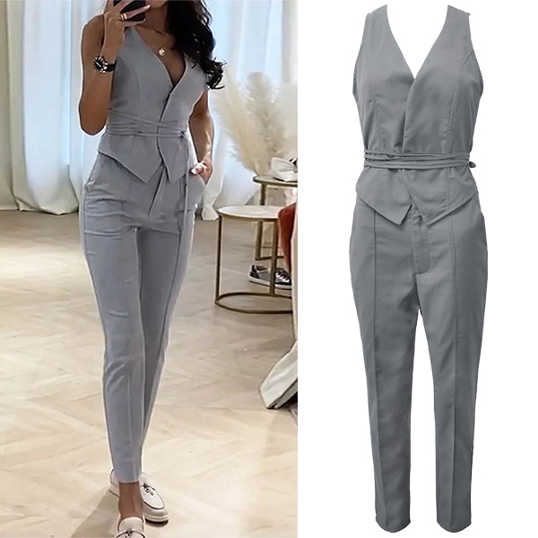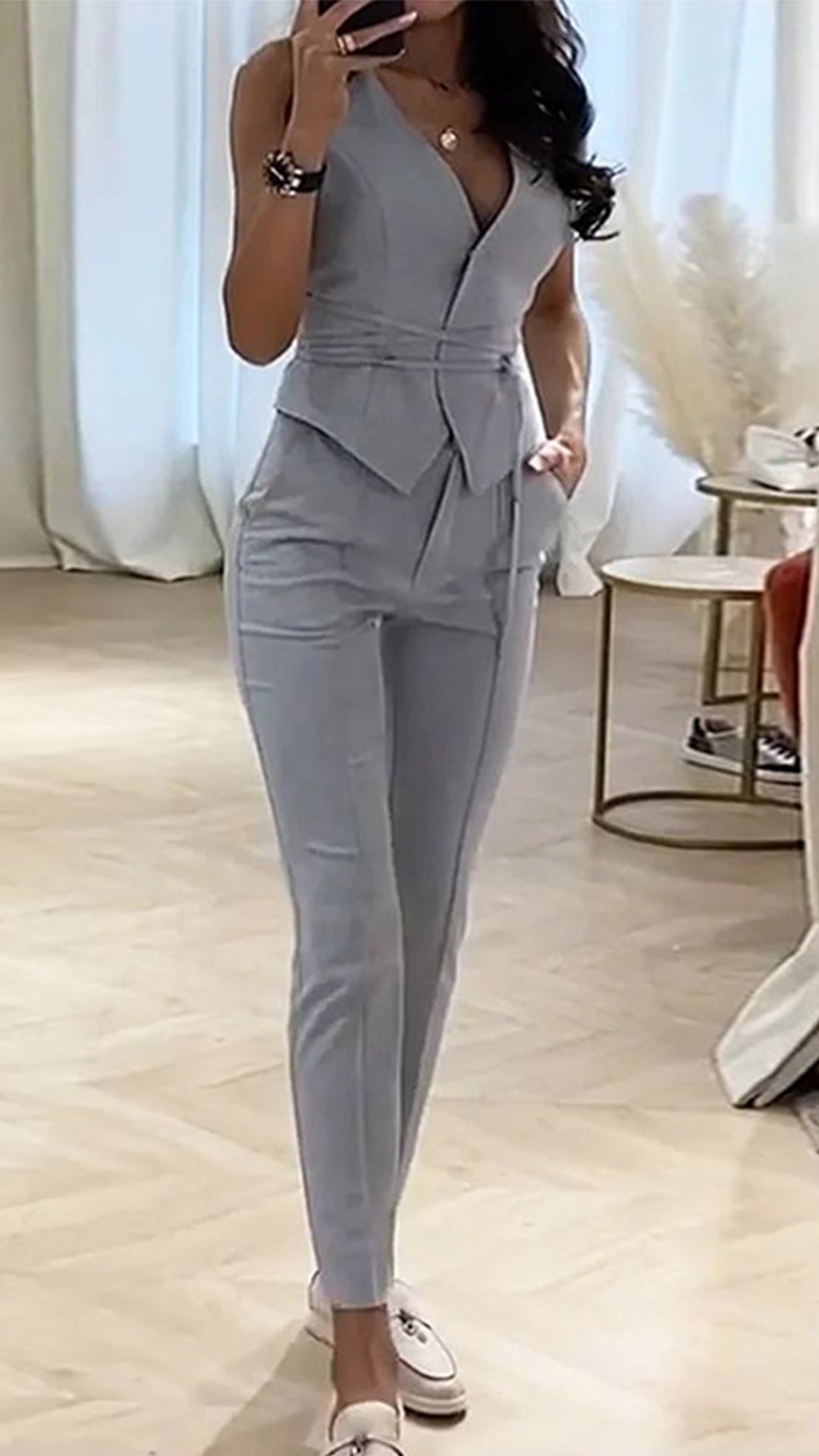 Elegant Two-piece Set Consist of Self-tie Vest and Pants