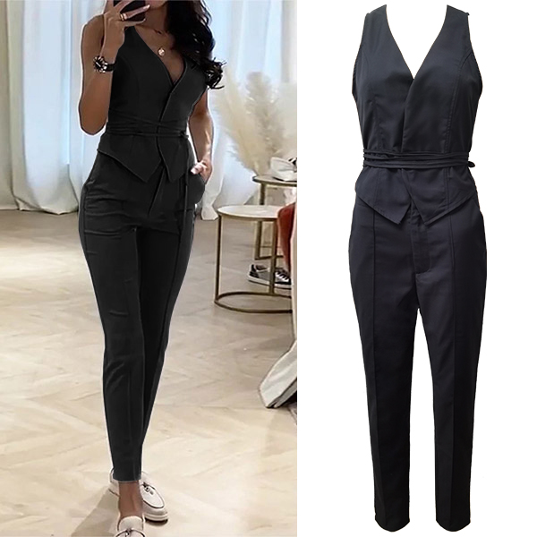 This set is perfect for formal occasions, work events, or any occasion where you want to look polished and put together. It features a self-tie vest and matching pants. The vest offers a classic and sophisticated look, with a flattering self-tie design that accentuates the waistline. The pants are tailored to perfection, with a flattering and comfortable fit that elongates the legs.