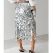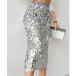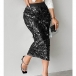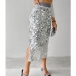 Fashion Bling-bling Sequin Side Slit High-rise Pencil Skirt