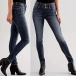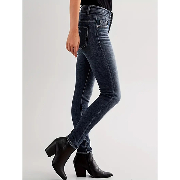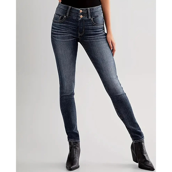 This denim features classic button fly closure with flattering high-rise waistline and figure-enhancing skinny silhouette for modern casual sophistication. Perfect for daily wear.