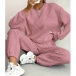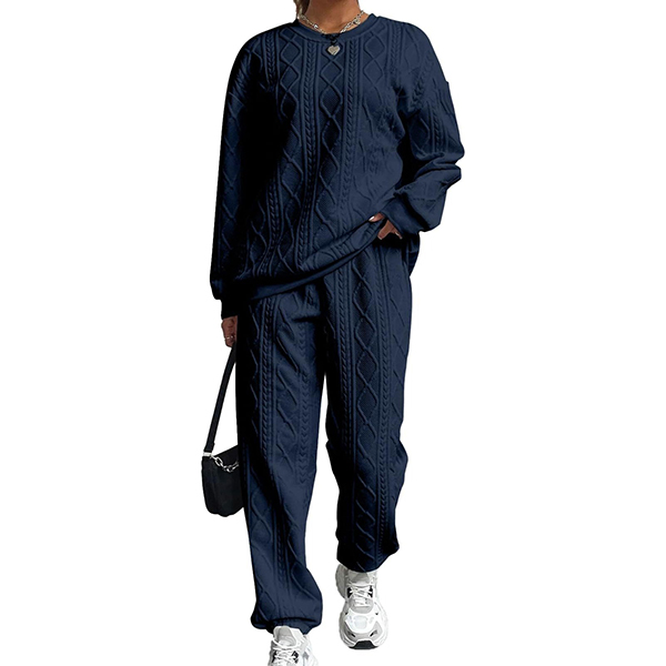 This coordinated knitwear ensemble brings cozy sophistication through artisanal cable detailing and matching silhouettes. The intricate cable knit pattern adds textural richness and traditional craftsmanship appeal, while the two-piece format creates effortless coordination with contemporary versatility. The matching sweater and pants deliver comfort-focused styling that feels polished enough for various occasions while maintaining the relaxed appeal of quality knitwear. Perfect for lounging in style, casual outings, work-from-home comfort, or anytime you want coordinated ease with elevated appeal. Multi-colors available.