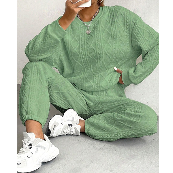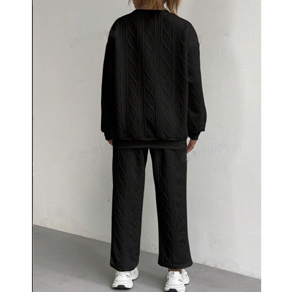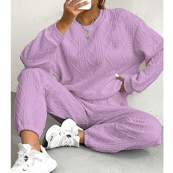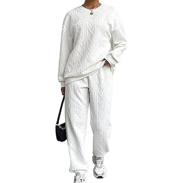Fashion Cable Knitted Two-piece Set Consist of Sweater and Pants