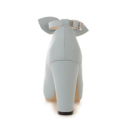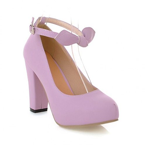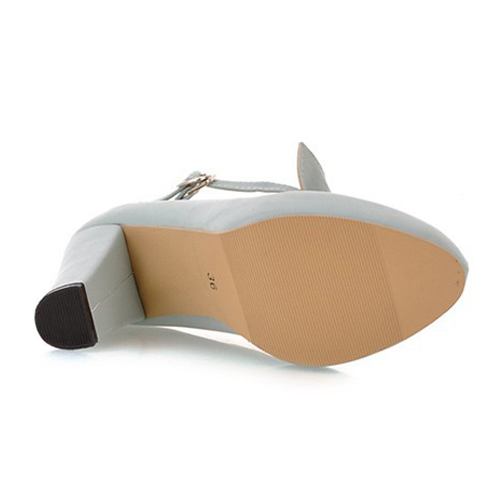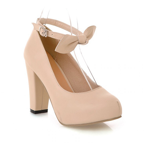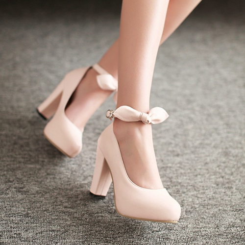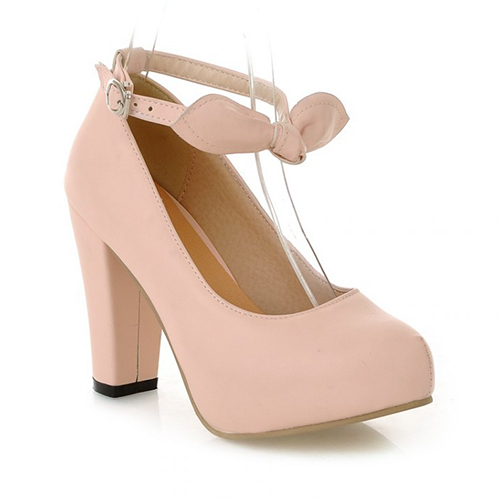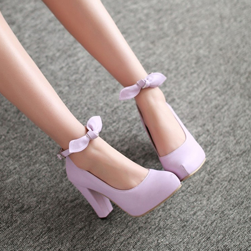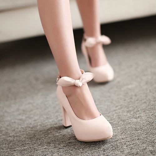thick high-heeled with anti-slip sole,comfortable to wear. Bowknot ankle strap adds its