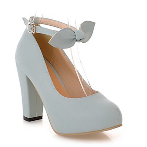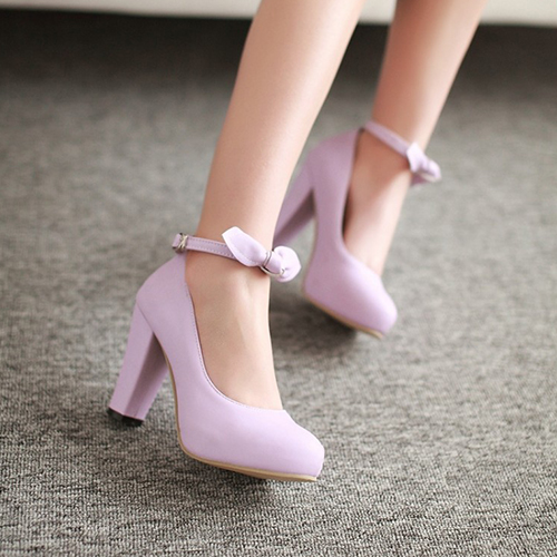 Fashion Candy Color Thick High-heeled Round Toe Bowknot Shoes