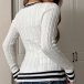 This sweater features classic cable knit pattern with striking contrast stripe detailing along the flattering V-neck for modern elegance.Pair with jeans and ankle boots for comfortable weekend elegance.