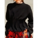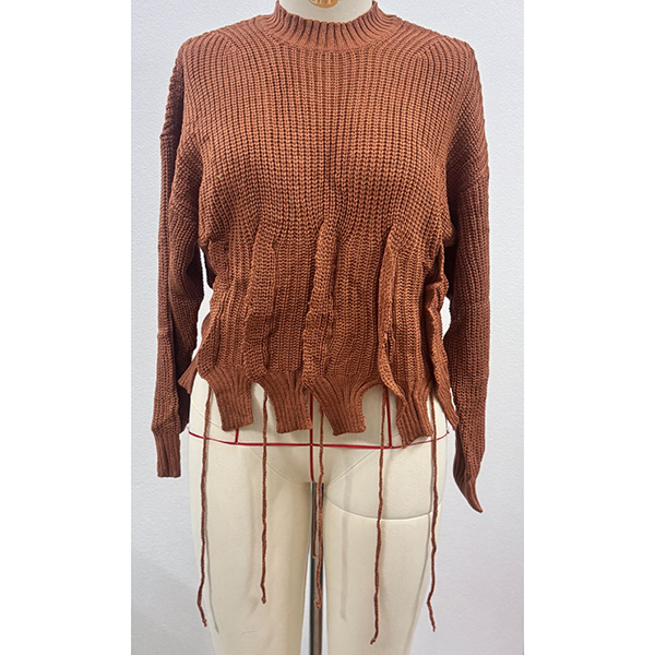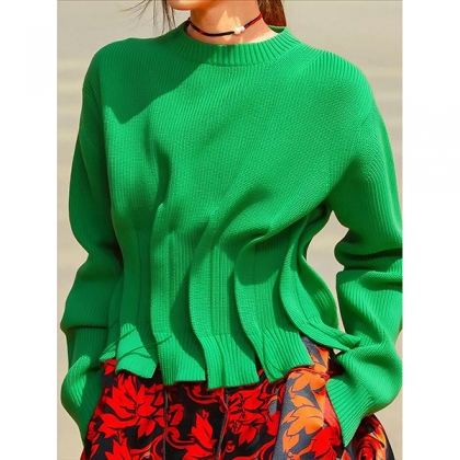 Fashion Crew Neck Long Sleeve Pleated Knitted Sweater