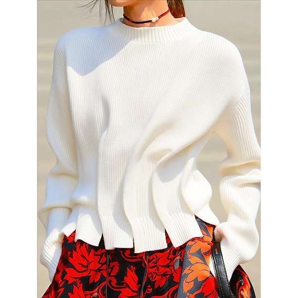 Stay cozy and stylish with this Pullover. This fashionable sweater features a classic crew neckline and elegant pleated hemline details that add texture and visual interest. Made from soft, breathable knit fabric, it offers comfort and warmth for those chillier days. Multi-colors avabile.
