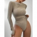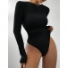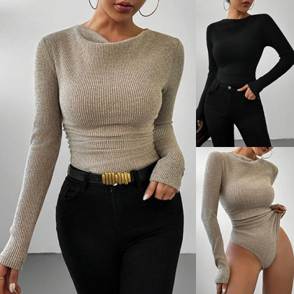 Fashion Crew Neck Long Sleeve Ribbed Bodysuit