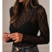 This black shirt features classic crew neck styling with alluring semi-through mesh-net construction and complete long sleeve coverage for modern sophisticated elegance. Pair with fitted camisoles underneath and structured bottoms for layered modern appeal.
