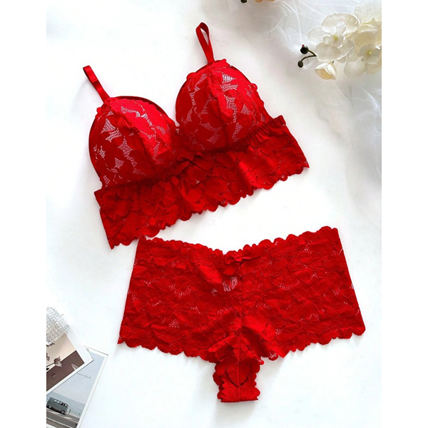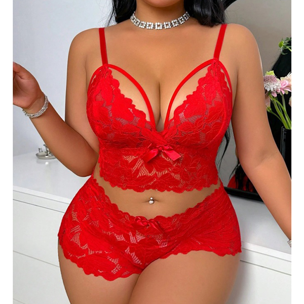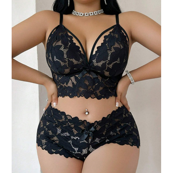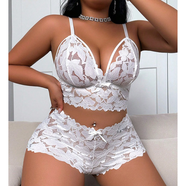 Fashion Cutout Bow-knot Lace Two-piece Lingerie Set