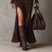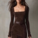 Look at this dress! The modern square neckline creates a refined, fashion-forward frame. The sumptuous faux suede fabric drapes beautifully against your body, offering a premium look and feel. A high slit adds a sultry touch and allows for effortless movement, while the included belt cinches at the waist to accentuate your curves. Complete the look with ankle boots or heels for understated sophistication.