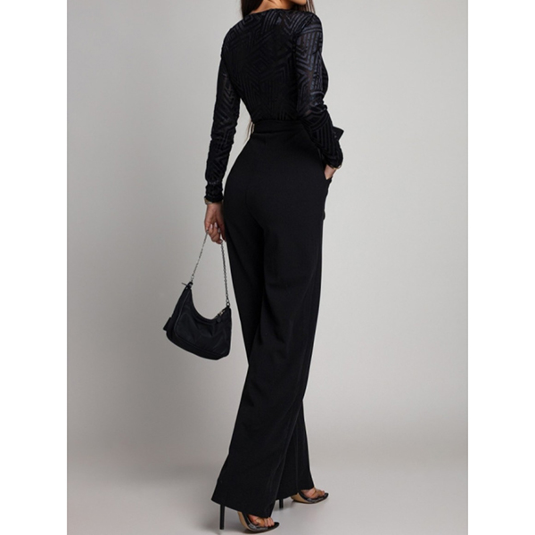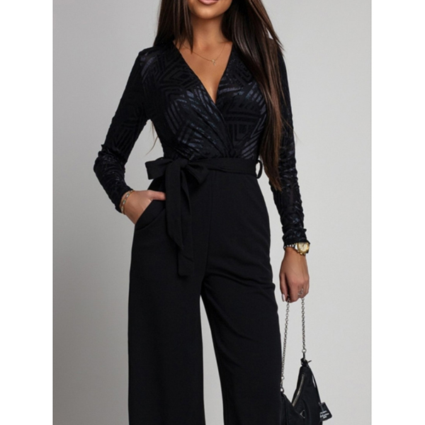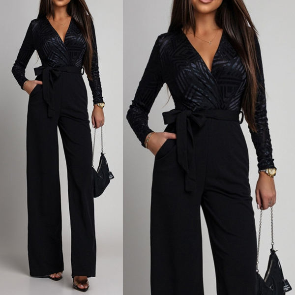 Elevate your wardrobe with this luxuriously textured jumpsuit that celebrates artisanal craftsmanship and botanical beauty. Intricate floral jacquard weaving creates dimensional texture and raised pattern that you can see and feel, adding rich visual interest and tactile sophistication. The flattering V-neckline elongates your silhouette and adds graceful femininity, while long sleeves provide elegant coverage perfect for cooler seasons or transitional weather. A flattering self-tie detail cinches your waist for customizable definition, allowing you to create your ideal hourglass shape. Straight-cut legs deliver timeless, streamlined lines that flow gracefully and create an elongating effect. Perfecet for daily wear.
