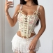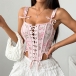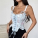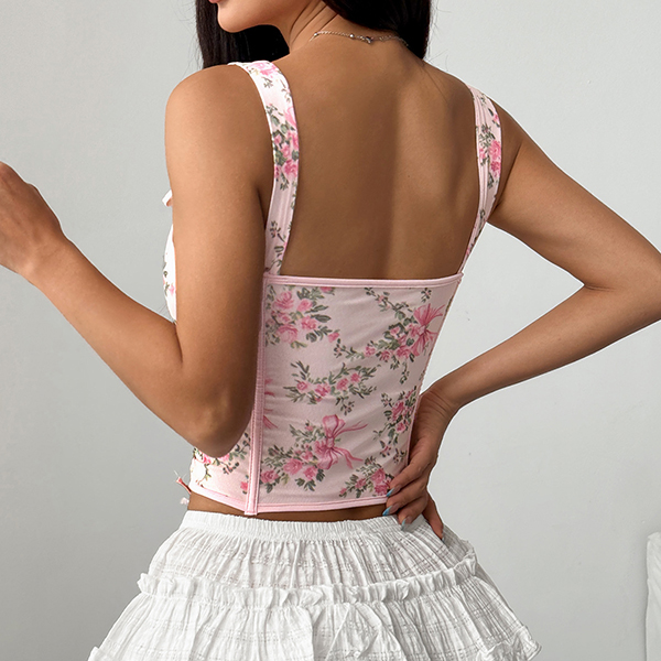 Fashion Floral Printed Bowknot Front Lace-up Corset Crop Top