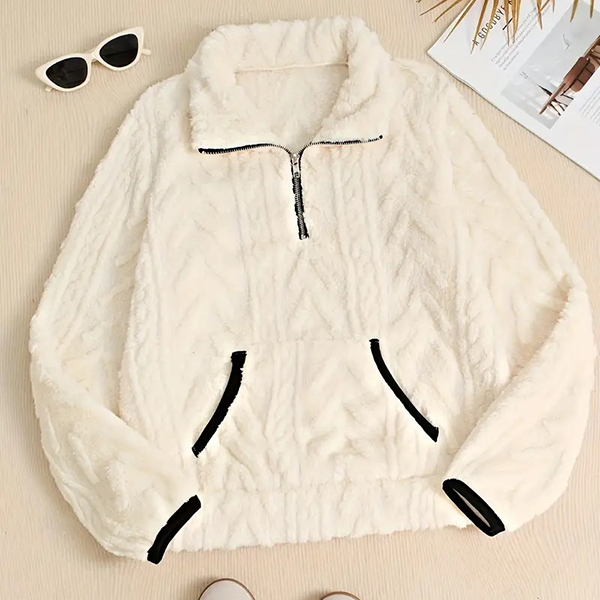 This cozy sweatshirt features luxurious plush fabric with contemporary half-zipper styling and practical kangaroo pockets for ultimate comfort. The soft plush material brings exceptional warmth whilst the half-zipper offers adjustable ventilation and modern sporty appeal. Perfect for lounging, casual outings, or comfortable weekend wear.