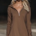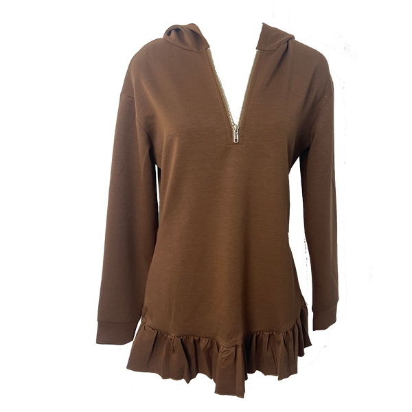 This sweatshirt features sporty half-zipper styling with flattering V-neck design and playful ruffle hemline for modern casual elegance.  Perfect for casual occasions, sporty styling, or comfortable everyday coordination.