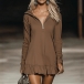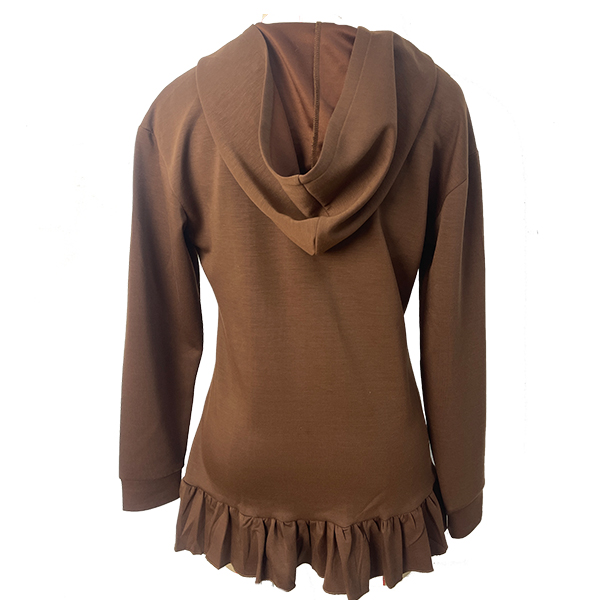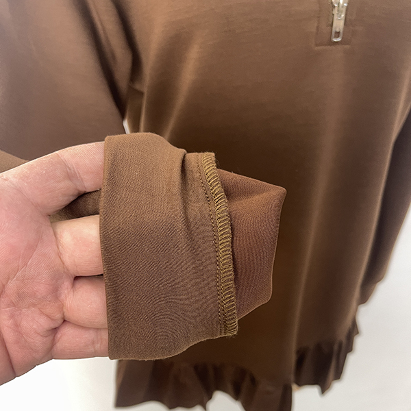 Fashion Half-zipper V-neck Long Sleeve Ruffle Hemline Sweatshirt
